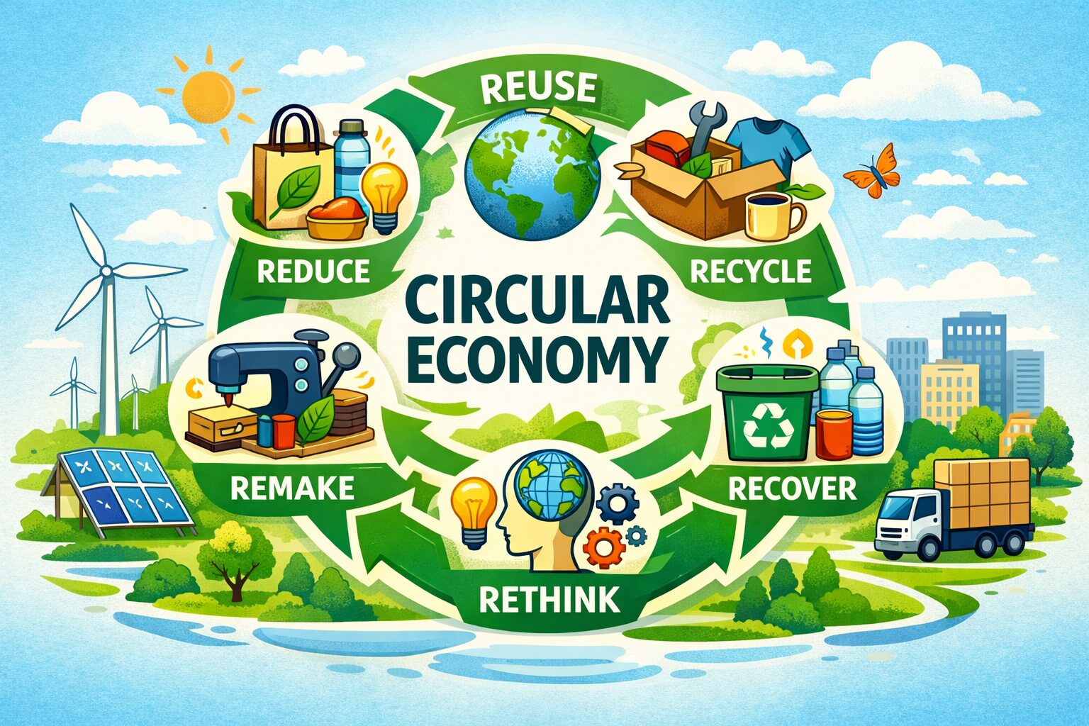 資源をできる限り長く使い、廃棄物を出さない経済の仕組みです。